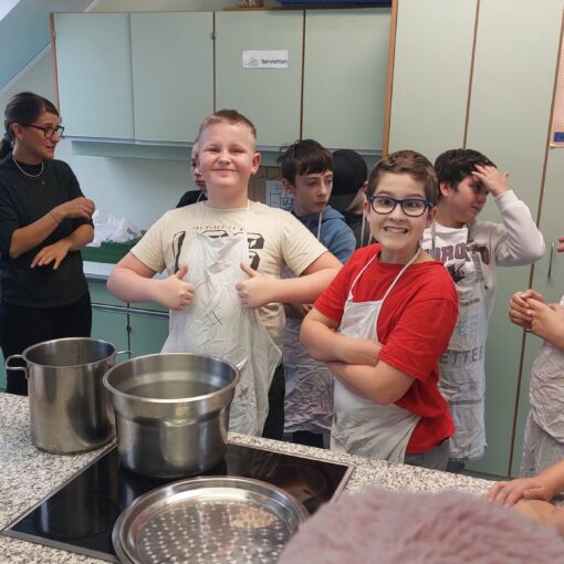 Endlich Frühling – das Leben erblüht, Wiesen und Wälder werden bunt! Die Zeichengruppe des Kreativen Dreiecks der 2. Klassen machte genau das zu ihrem Motto. Das Hornveilchen wurde genau unter die Lupe genommen. Die Schülerinnen und Schüler skizzierten es in seiner interessanten Anordnung der Blütenblätter und hauchten ihm mittels der Aquarelltechnik Farbe ein. Nach demselben Prinzip gestalteten sie auch Portraits von Hasen. In der Aquarelltechnik steht das Arbeiten mit dem richtigen Verhältnis von Wasser und Farbe im Vordergrund, gefordert werden auch Genauigkeit und Geduld. Das dritte Frühlingsbild stellt einen blühenden Kirschbaum dar. Hierbei wurde zuerst der Hintergrund gemalt und danach das Baumskelett (Stamm und Äste) darauf gezeichnet. Für den letzten Schritt verwendeten die Schülerinnen und Schüler Wattestäbchen, um die Kirschblüten aufzutragen und so eine weiß-rosarote, prächtige Baumkrone zu erzeugen. Hierbei war viel Fingerspitzengefühl notwendig. Die Gemeinsamkeit der Bilder ist die Individualität des Motivs. Kein Hase gleicht dem anderen, keine Blume der anderen, jeder Baum ist einzigartig und für sich schön – genau wie es sich bei uns Menschen verhält. Alle Schülerinnen und Schüler setzten die Tipps und Tricks motiviert um. Dafür sprechen auch die tollen Ergebnisse.