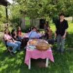Als wir bei Frau Farkas‘ Haus angelangt waren, erntete sie Wildkräuter und angesäte Kräuter für uns, damit wir sie mitnehmen, trocknen und daraus Kräutersalz herstellen konnten.