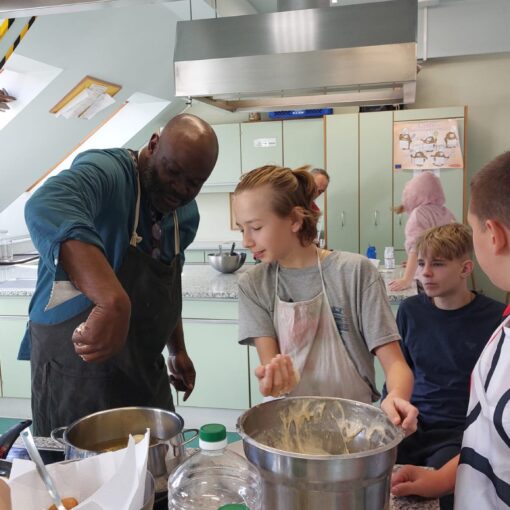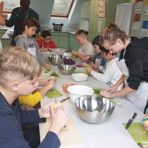Projekte Workshop: gemeinsames internationales Kochen Veröffentlicht am 23. November 2025 Die 2 B hatte einen Workshop Gemeinsames internationales Kochen. Gemüse mit Hühnerfleisch in Erdnusssauce und eine wunderbare Nachspeise wurden gemeinsam mit viel Freude zubereitet.